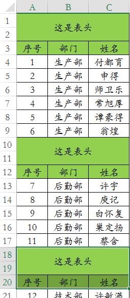 如上一个问题的表格,需要每隔十行,加入一行标题行。除了一个个复制外,还有什么办法?