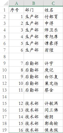 如下图,希望在不同的部门之间插入一个空行,除了一个个手动插入外,是否还有更好的办法?